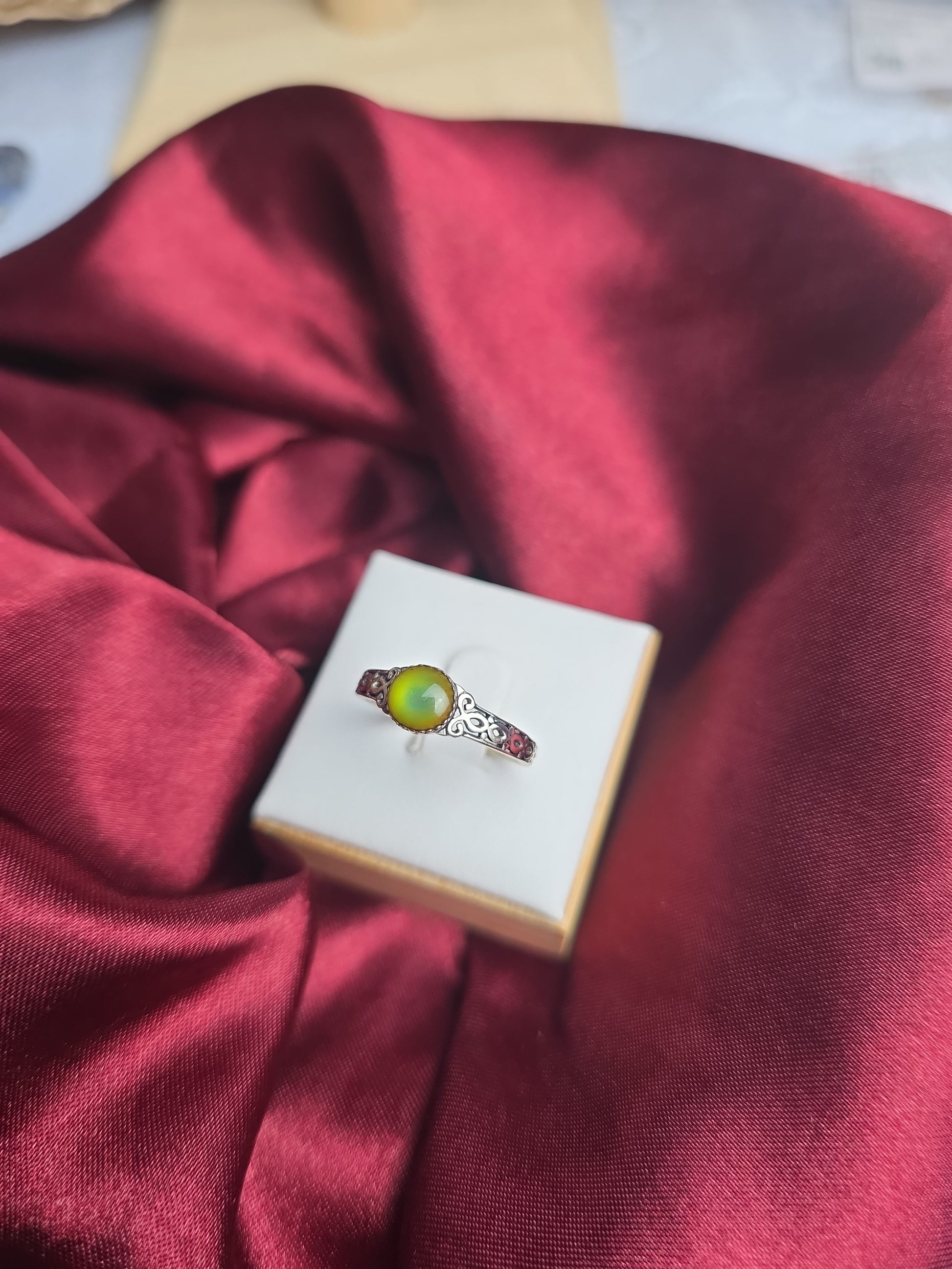 piece features a mood stone that adapts to your emotions. Choose from amber
